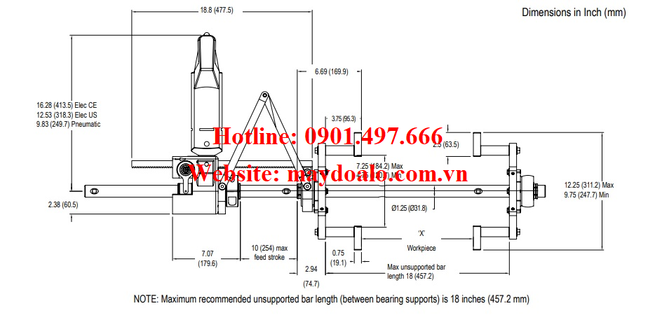 - Trục doa được thiết kế cho phép bộ dẫn động và hộp chạy dao có thể được lắp đặt tại bất cứ điểm nào trên trục, thậm chí tách rời riêng biệt.